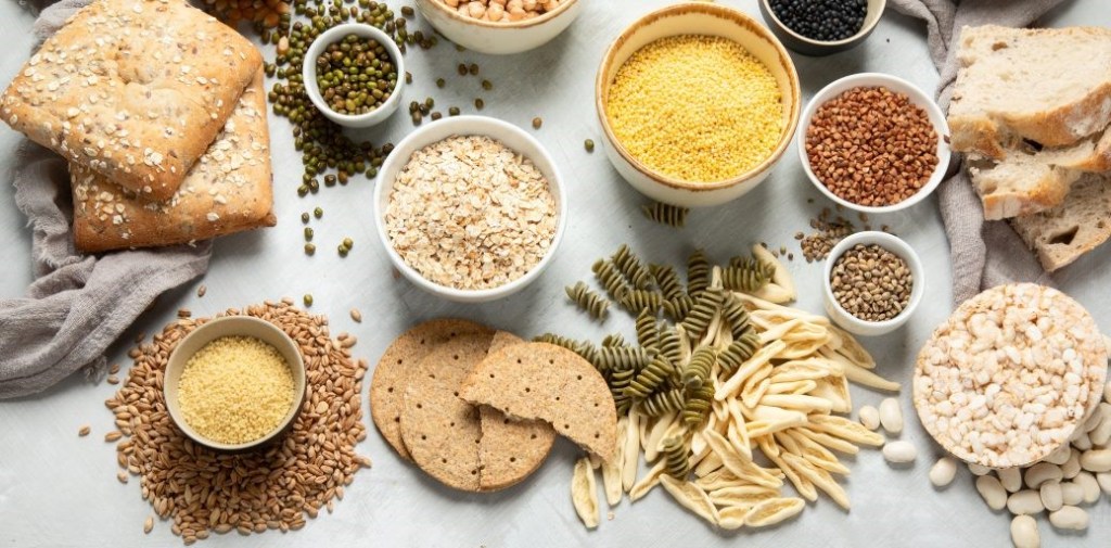 You can combine pasta with bread, potatoes with bread, rice with bread, pasta salad with whole grain crackers and corn, rice salad with corn and penne/fusilli/rigatoni pasta.